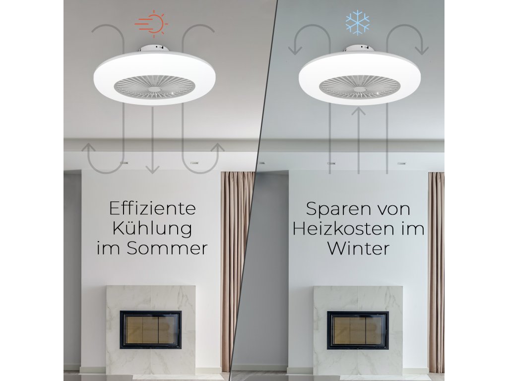 Mit Hilfe dieser Funktionen wird der Deckenventilator spielend zu einem multifunktionalen Kronleuchter, der den Raum vollwertig beleuchtet und gleichzeitig kühlt. All dies ist Teil des Deckenventilators mit Leuchte.