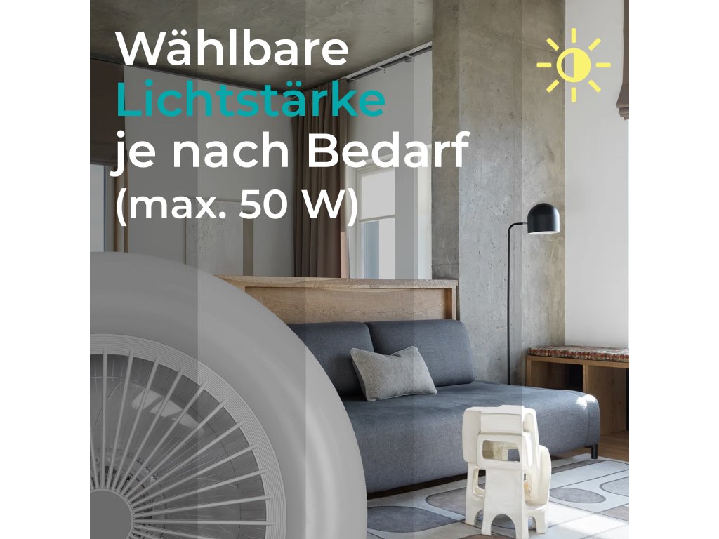 Ein wesentlicher Bestandteil des Deckenventilators ist seine Leuchte. Es handelt sich jedoch um keine gewöhnliche Leuchte wie bei Konkurrenzprodukten, da ihr Licht bequem per Fernbedienung reguliert werden kann. So können Sie das Licht je nach Tageszeit oder einfach entsprechend der Stimmung ändern. Interessant ist auch die sogenannte Dimmfunktion, mit der man die ideale Helligkeit nach Bedarf einstellen kann.
