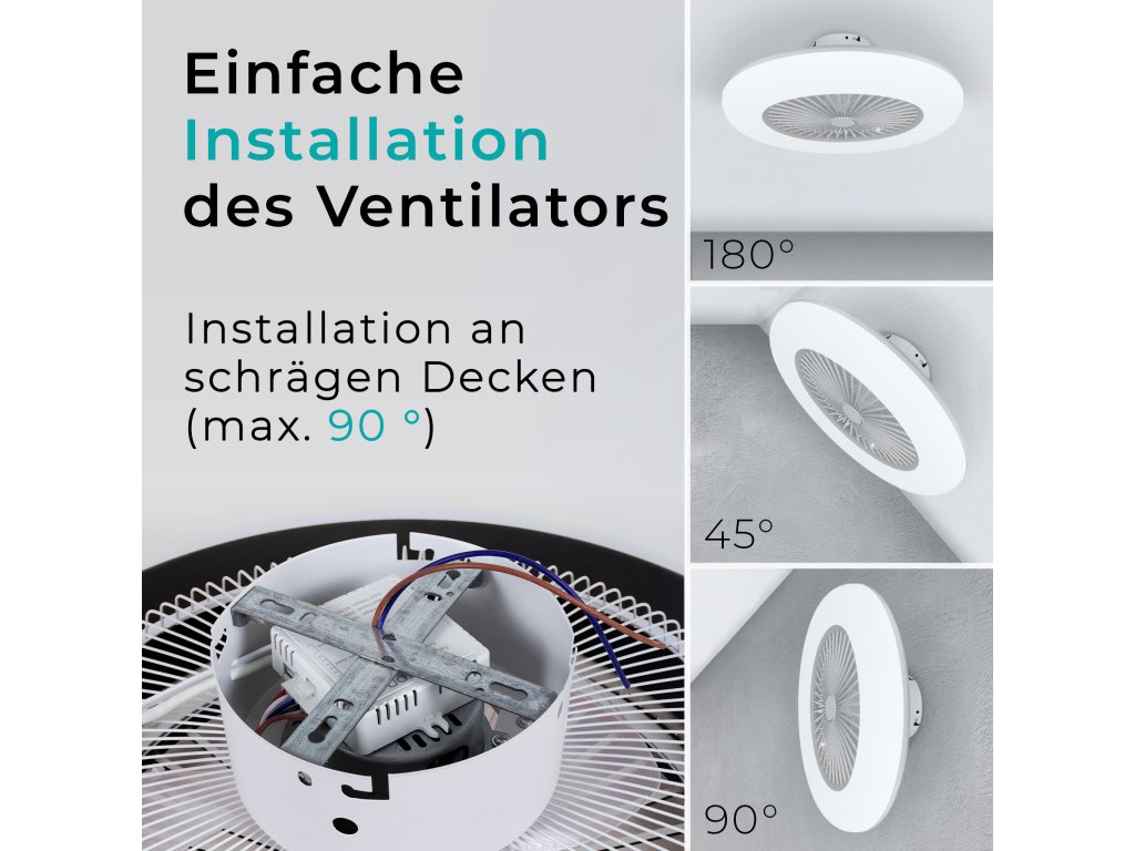 Den Ventilator befestigen Sie also mit Schrauben und Dübeln an der Decke (gegebenenfalls and der Wand) und schließen ihn direkt an das häusliche Stromnetz an. So erhält das Gerät die für seinen Betrieb notwendige Energie. Weitere Informationen zur Installation finden Sie natürlich im Handbuch.